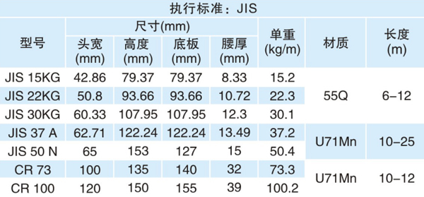 Japanese and Korean standard rails