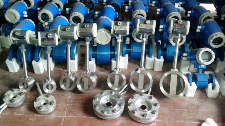 電磁流量計是由直接接觸管道介質的傳感器和上端信號轉換器兩部分構成。它是基于法拉*電磁感應定律工作的,用來測量電導率大于3μs/cm的導電液體的流量,是一種測量導電介質流量的儀表。除了可以測量一般導電液體的流量外,還可以用于測量強酸、強堿等強腐蝕性液體和均勻含有液固兩相懸浮的液體,如泥漿、礦漿、紙漿等。特別設計了帶背光寬屏的中.英文液晶顯示器,功能齊全實用、顯示直觀、操作使用方便,在滿足現場顯示的同時,還可以輸出4~20mA電流信號供記錄、調節和控制用,現已廣泛地應用于化工、環保、冶金、醫藥、造紙、給排水等工業技術和管理部門。