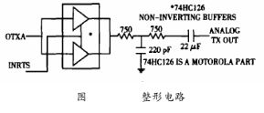 如圖4所示,緩沖器74HC126的作用是使方波的上升沿和下降沿趨于平緩,使信號滿足HART物理層規(guī)范所要求的信號波形上升沿和下沿的時(shí)要求,因?yàn)檩^平緩的上升沿和下降沿時(shí)間可以降低與其它網(wǎng)絡(luò)間的串?dāng)_。