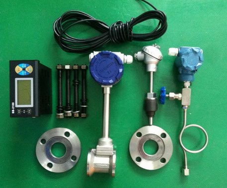 這些交替變化的旋渦就形成了一系列交替變化的負壓力,該壓力作用在檢測探頭上,便產生一系列交變電信號,經過前置放大器轉換、整形、放大處理后,輸出與旋渦同步成正比的脈沖頻率信號或標準信號。
