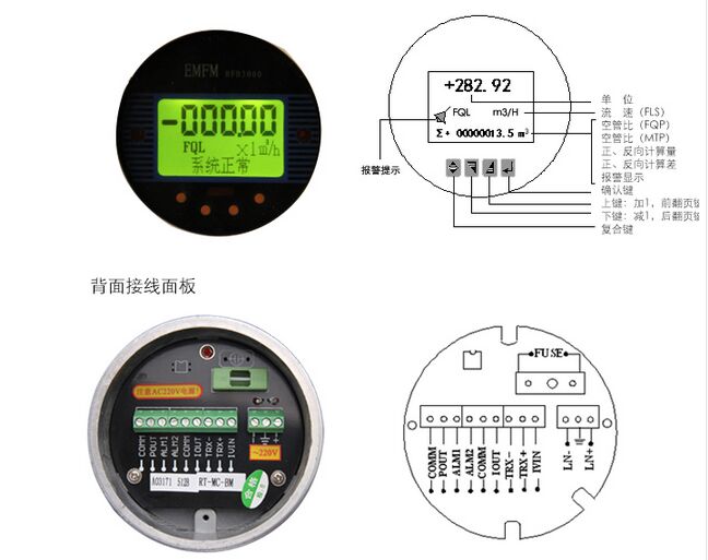 儀表顯示:高清晰度背光LCD顯示(126 x 48 點陣),可同時顯示瞬時、累積流量等信息與相關單位,中文/英文菜單支持