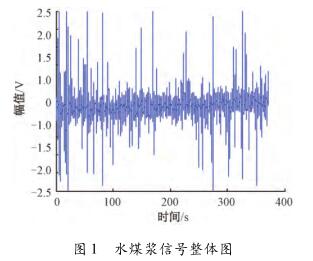 針對(duì)硅酸鈉流量計(jì)測(cè)量水煤漿時(shí)出現(xiàn)較大波動(dòng),甚至回零這一問(wèn)題,特去某煤化工企業(yè)甲醇分公司進(jìn)行現(xiàn)場(chǎng)數(shù)據(jù)采集。該公司所使用的對(duì)置式四噴嘴氣化有4個(gè)噴嘴,噴嘴管道口徑為125mm,管中水煤漿流量基本穩(wěn)定在19m³/h(流速約為0.48m/s)。每條噴嘴煤漿線上安裝了3臺(tái)硅酸鈉流量計(jì),每臺(tái)硅酸鈉流量計(jì)由傳感器和變送器兩部分組成。選擇其中1條水煤漿管線上的1臺(tái)硅酸鈉流量計(jì)進(jìn)行數(shù)據(jù)采集,因?yàn)樵撆_(tái)硅酸鈉流量計(jì)測(cè)量結(jié)果波動(dòng)大,甚至出現(xiàn)回零的現(xiàn)象。將課題組研制的基于DSP的電磁流量變送器的信號(hào)線和勵(lì)磁線接到該電磁流量傳感器的電極和勵(lì)磁線圈上,組合成完整的硅酸鈉流量計(jì),進(jìn)行水煤漿數(shù)據(jù)采集。使用的電磁流量變送器是以TI公司DSP芯片TMS320F28335為核心,采用高頻勵(lì)磁方案,其硬件主要包括勵(lì)磁控制系統(tǒng)和信號(hào)采集處理系統(tǒng),具體的模塊有勵(lì)磁驅(qū)動(dòng)模塊、信號(hào)調(diào)理采集模塊、信號(hào)處理控制模塊、人機(jī)接口模塊、通信模塊及電源管理模塊。信號(hào)調(diào)理采集模塊中的調(diào)理電路對(duì)一次儀表輸出的信號(hào)進(jìn)行放大和濾波,截止頻率是2kHz,放大倍數(shù)約為230倍。通過(guò)NI公司USB-6216型號(hào)的數(shù)據(jù)采集卡進(jìn)行數(shù)據(jù)采集,把調(diào)理電路的輸出端連接到數(shù)據(jù)采集卡的一個(gè)差分輸入端,并設(shè)置數(shù)據(jù)采集卡工作在差分的測(cè)量模式,設(shè)置采集卡的采樣頻率為10kHz。采集多組水煤漿信號(hào)數(shù)據(jù),每組數(shù)據(jù)的時(shí)間長(zhǎng)度為5min。