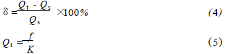 將乙烯流量計在標準水裝置上,分別用頻譜分析和脈沖計數的方法進行標定,流體介質為水未加氣體,采用的標準傳感器為精度等級為0.2級的電磁流量計。在每個流量測量點上的儀表系數用公式(1)計算,然后用式(2)計算得到*終儀表系數K。Ql為被測水的流量值,f為每一個流量點得到的頻率,k為每個測量點得到的儀表系數。kmax、kmin分別為試驗流量范圍內得到的*大與*小的儀表系數。儀表系數的線性度E1用式(3)來計算。