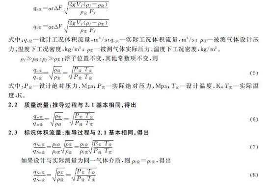 流量計在測量氣體介質(zhì)時,當氣體溫度、壓力不穩(wěn)定,造成被測氣體工況密度變化較大時,流量指示誤差增大,此時應(yīng)進行溫度壓力補償計算,恢復(fù)儀表測量的準確性。具體推導(dǎo)、計算如下: