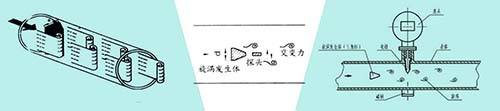 (3)有縮頸、擴頸和彎管時,應配置合理的上、下游直管段,如果管道中有一個彎管接頭,那么流量計和旋渦發生體與彎管接頭應在同一平面。