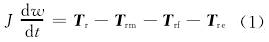 渦輪在轉動時所受的力矩大致可分:流體對渦輪的推動力矩Tr,機械摩擦力矩Trm,流體對渦輪產生的流動阻力矩Trf和電磁阻力矩Tre。渦輪運動方程可以表示為