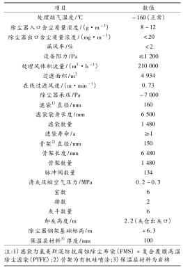 (2) 新建布袋除塵及氣力輸灰氦氣流量計。采用長袋低壓脈沖袋式(外濾式)除塵器,煙氣體積流量為 210 000 m 3 /h,初 始 含 塵 質(zhì) 量 濃 度 為 8 ~12 g/m 3 ,除塵占地面積為 20 m 2 (5 m ×4 m)。除塵器主要由本體、壓縮空氣系統(tǒng)、控制系統(tǒng)、輸灰系統(tǒng)組成。除塵器后進(jìn)脫硫塔煙塵質(zhì)量濃度≤20 mg/m 3 。除塵器的總阻力≤1 200 Pa。新建布袋除塵器型號為 LCMD-4934,設(shè)計參數(shù)見表 2,其中清灰方式采用離線清灰,除塵器布置方式為矩形布置,電氣控制采用可編程邏輯控制器(PLC)。