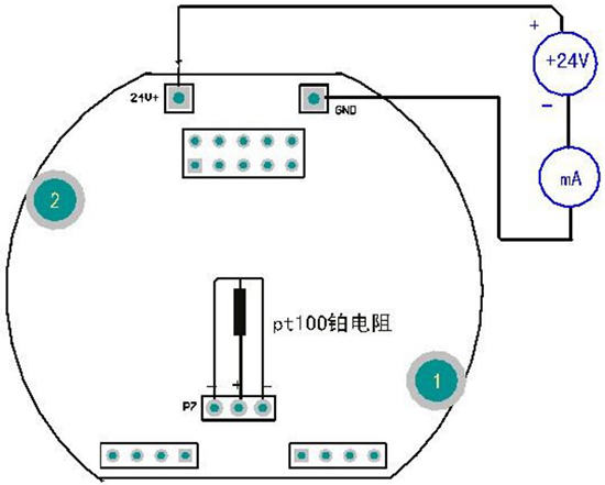 2. +24V、0V 為電路板供電和信號輸出端,兩線制儀表的電流為信號輸出,供電和測試,取信號如圖所示。