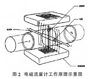 若在磁感應強度為B的均與磁場中,垂直于磁場方向放一個內(nèi)徑為D的不導磁管道,當導電液體在管道中以流速u流動時,導電流體就切割磁力線。如果在管道截面上垂直于磁場的直徑兩端安裝一對電極則可以證明,兩電極之間也將產(chǎn)生感應電動勢E=kBDv (1-2)